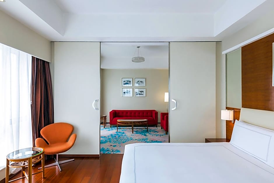 The spacious double room provides air conditioning, a wardrobe and city views. The unit offers 1 bed.